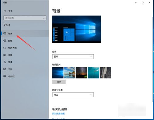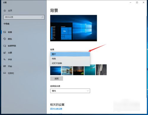 3、点击箭头所指处,可以进行纯色桌面壁纸的设置。