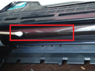 5、最后用棉签清理理光复印机的硒鼓里粉结块。