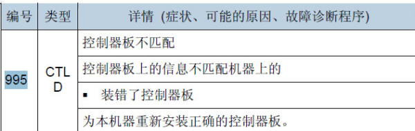 1、上面的信息已经说的很清楚了,当前安装的控制器板是与机器不匹配的。这时我们再把本来属于这台机器的控制器板拿回来安装上去,发现还是报sc995。