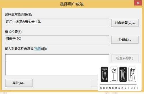 3、在组或用户名下面,点击添加,弹出选中用户和组选项卡,