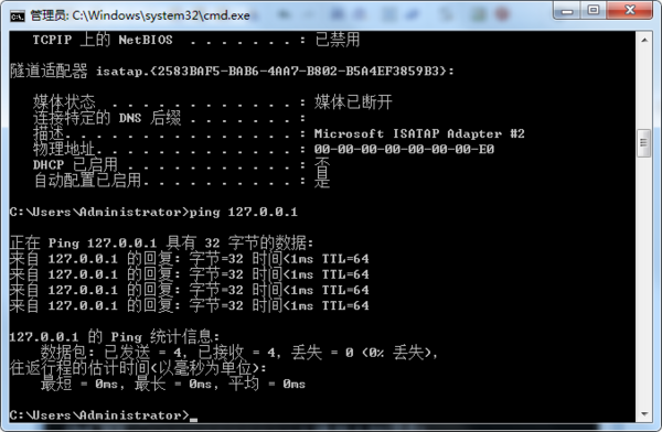 127.0.0.1”命令后执行,观察网卡能否转发数据,当连续出现“Reply
