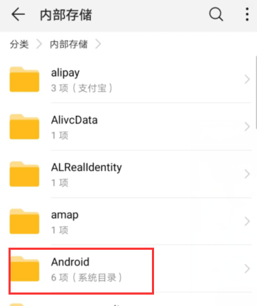 三、在内部存储根目录下找到“Android”这个文件夹,点击打开。