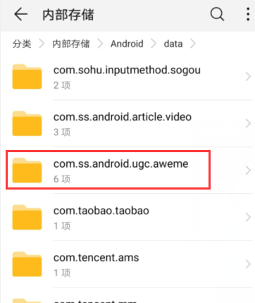 五、最后在该目录下找到“com.ss.android.ugc.aweme”这个文件夹,该文件夹就是安卓抖音安装文件所在文件夹。