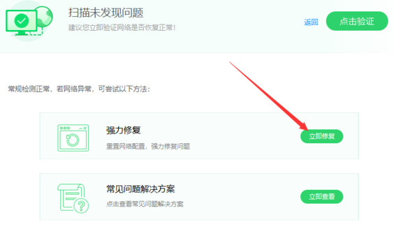 5.如果诊断并修复后仍然上不了网,就点击强力修复。