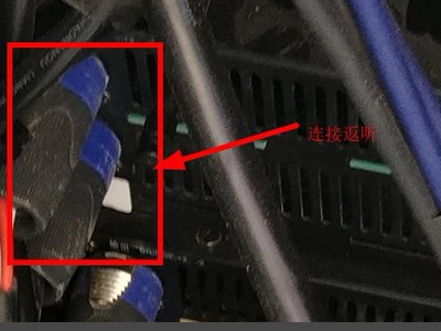 6、最后将连接返听线的一头连接返听音响的一头,另一头连接返听功放的输出。如下图。