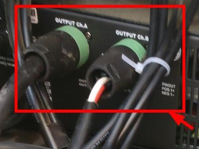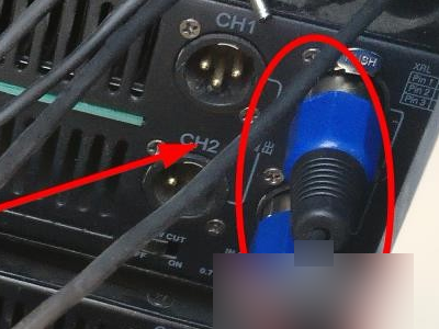 5、将连接主音箱线的一头连接主音响,另一头连接功放的输出。如下图。