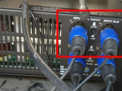 4、将第三步另一头连接到功放的输入,如下图所示。