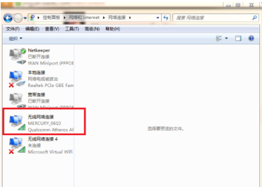 1)网络属性;选择无线网络,如果是连接网线的就是本地连接。