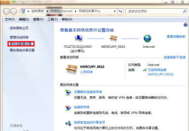 打开后,出现对话框,在对话框左侧上方找到更改适配器设置,单击左键打开。