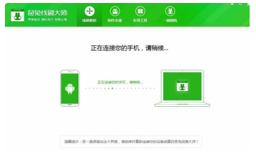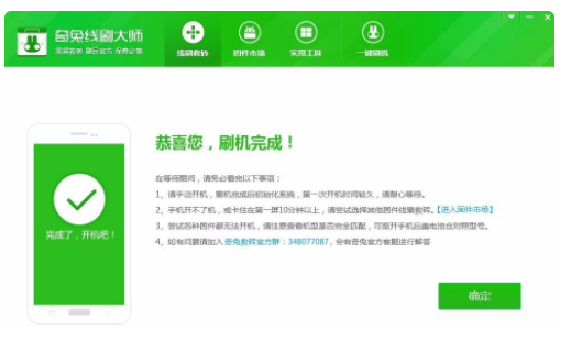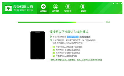 8,OPPO手机根据弹窗提示进入相应模式后,请重新插拔一下数据线以重新连接,重新连接后软件会自动开始线刷。奇兔线刷大师刷机成功之后,等待开机即可。