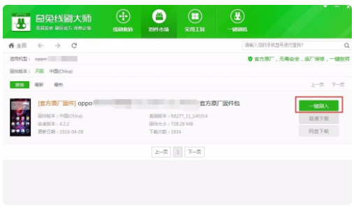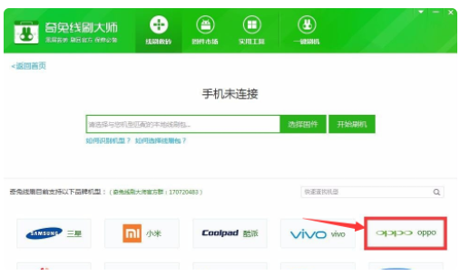 3,OPPO手机如果变砖了,奇兔线刷大师将无法识别,需要手动点击进入OPPO品牌的固件区,找到匹配的官方固件即可点击一键刷入。