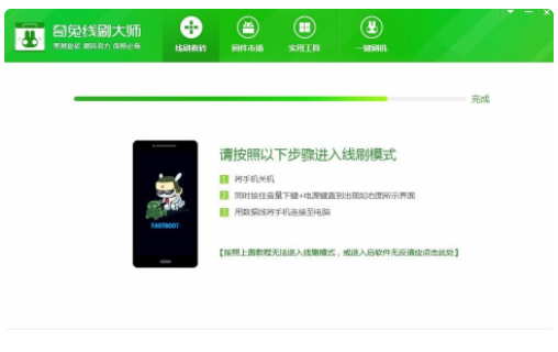 6,奇兔刷机软件端提示界面:fastboot模式;OPPO请按照软件软件端的提示步骤,手动进入fastboot模式。
