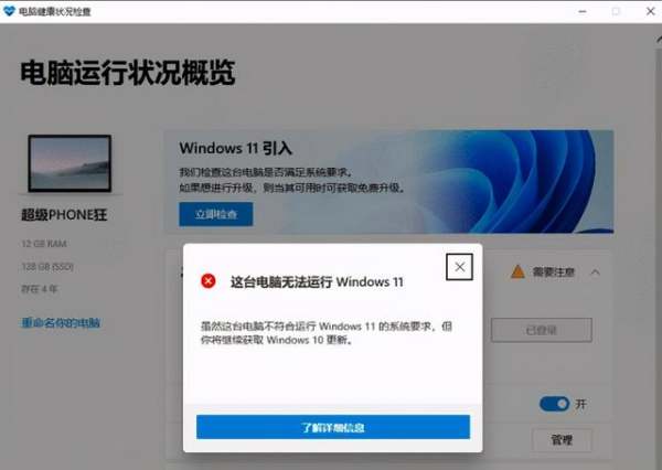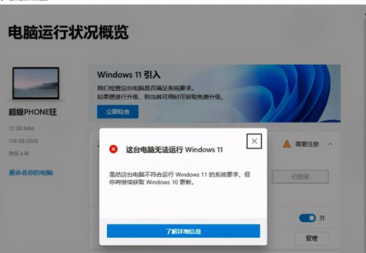 安装Windows11提示电脑不支持TPM2.0只能放弃安装,电脑最低配置不符合Windows11最低配置要求是无法升级安装的。