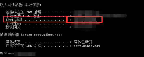 2. 使用ipconfig指令查看本地址的ip地址。