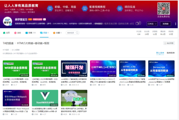 内容包含:(jQuery经典交互特效开发、HTTP协议、Ajax进阶与PHP/JAVA开发项目、前端工程化与模块化应用项目、PC端网站开发项目、PC端管理信息系统前端开发项目)