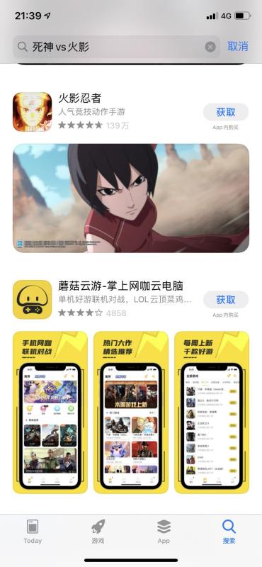 点击进入“App Store”应用商店内部。选择右下角的搜索标志进入。选择进入上方的搜索栏。输入“死神vs火影”进行搜索。等待应用商店搜索完成。点击搜索结果右侧的“GET”按钮。之后点击下方的“install”按钮完成下载。【回答】