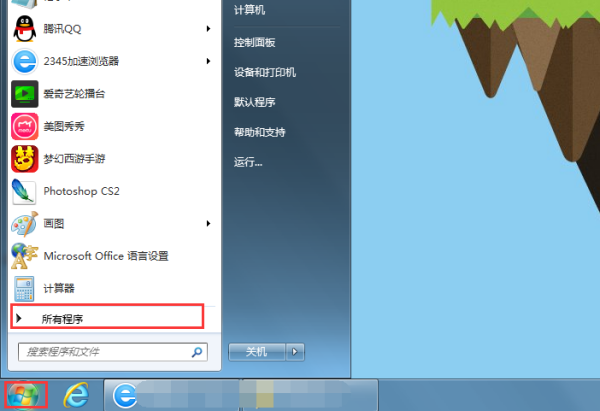 一、点击桌面左下角“开启菜单”,然后点击“所有程序”。