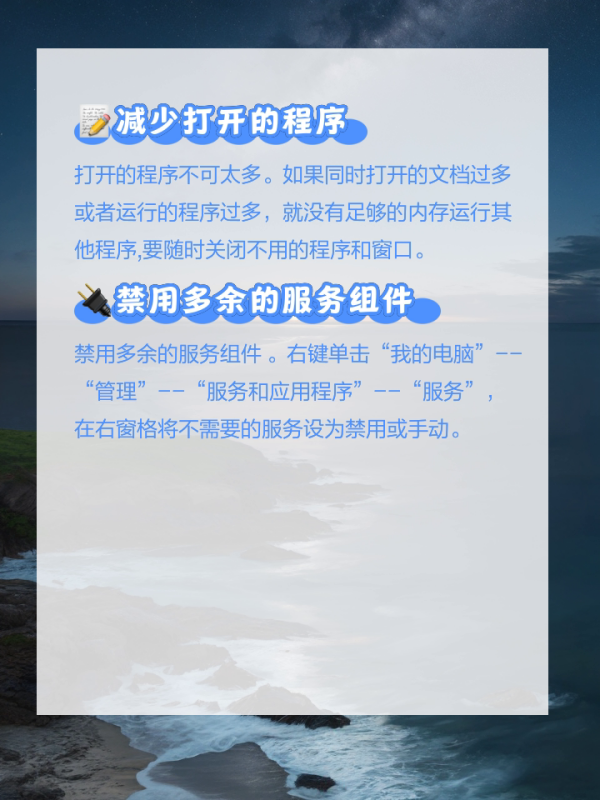 关闭一些不用的系统服务,并卸载不用的软件。