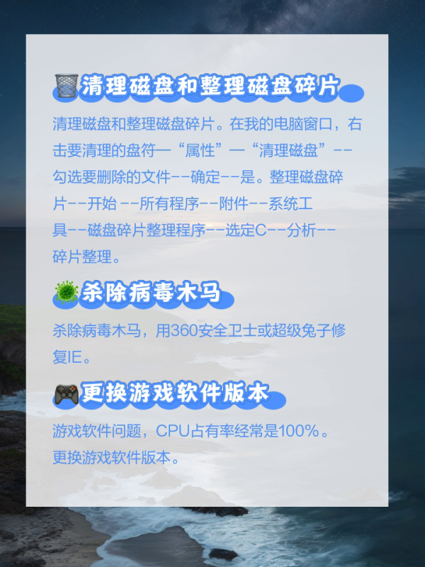 3.经常清理磁盘和整理磁盘碎片。