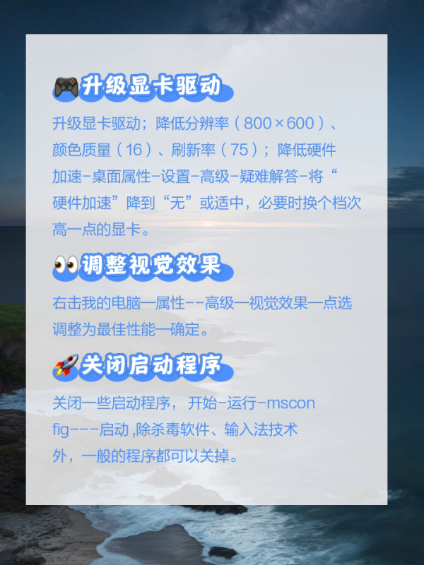 4.升级显卡、网卡驱动,换个档次高一点的显卡。