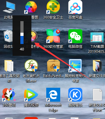 5、单独点击【F1】按键之后,桌面出现了音量调节条,此时说明【Fn】为默认开启的状态,说明【Esc】按键切换成功,此时【F1】为功能键。