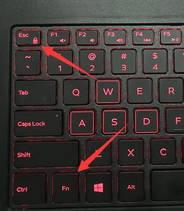 3、在笔记本键盘上找到左下角的【Fn】按键以及左上角的【Esc】按键,同时按下。
