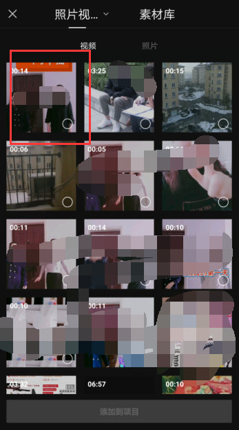 6、在出现的界面中,选择一个图片或者一个素材作为封面,选择好后,点击“添加到项目”按钮。