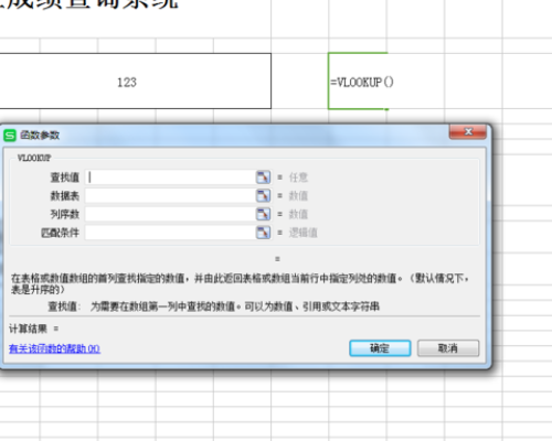 4、选择请输入学号框,此处为D3;数据表-选择sheet2中所有数据;列序数-选择“考试名称”对应的sheet2中的列数,此处应为第2列;匹配条件-0表示精确查找,1-表示模糊查找,此处选择精确查找,则输入0。