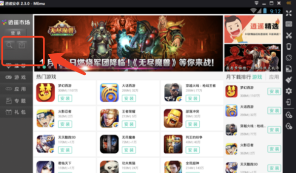 可以通过右侧的安装本地apk来实现,也可以直接去搜索下载。