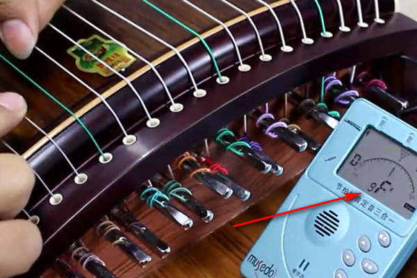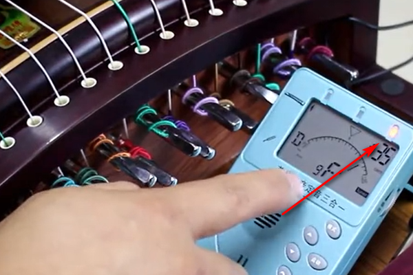 4、拨琴弦,显示的数字大于弦号,代表音过低,需要紧琴弦。