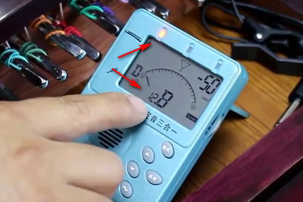 5、显示数字与弦号一至时,左边亮灯,代表还需要稍紧琴弦。
