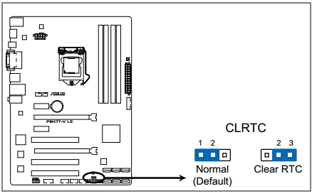 注意:各主板上的CLRTC实际位置,请参阅产品支持页面提供的说明书