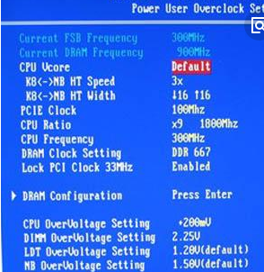 2、超频外频的时要一点一点地超,可以先调节成205的外频,然后重启看系统是不是正常,如果正常,再回来,调到210,如果正常再调,如此一次次地上调外频,直到调节到某个数字时系统不能正常启动了,那就对其加电压,也要一点一点地加,否则有可能会烧毁。首先要加0.1V的电压,重启看能否正常重启,如不能重启则为超频极限了。