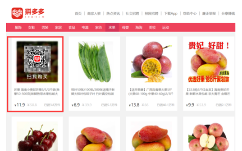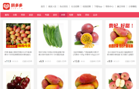 1,搜索"拼多多"可以看到"新鲜水果 服装箱包"等字眼,看起来像是可以在电脑网页上直接购物。