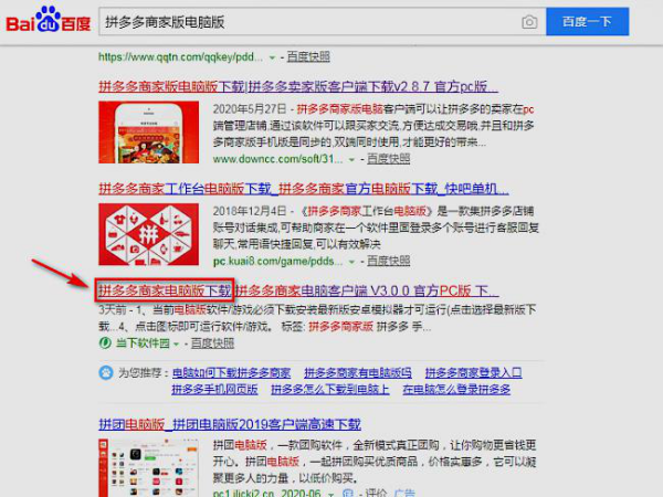 拼多多只有商家才有电脑版,直接在百度搜索下载就行了,具体操作步骤如下: