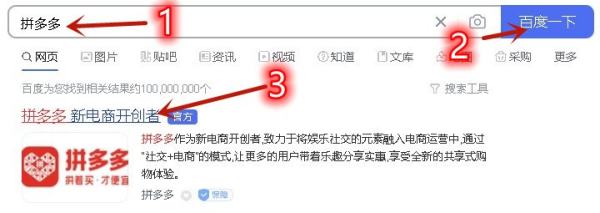 第一步:浏览器搜索拼多多,点击进入它的官网