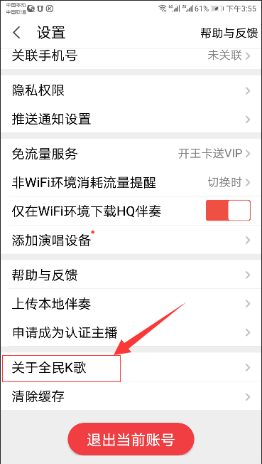 5、在设置的底部点击“关于全民K歌”选项