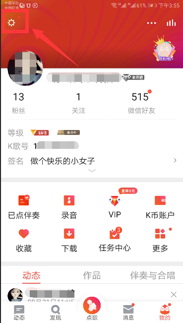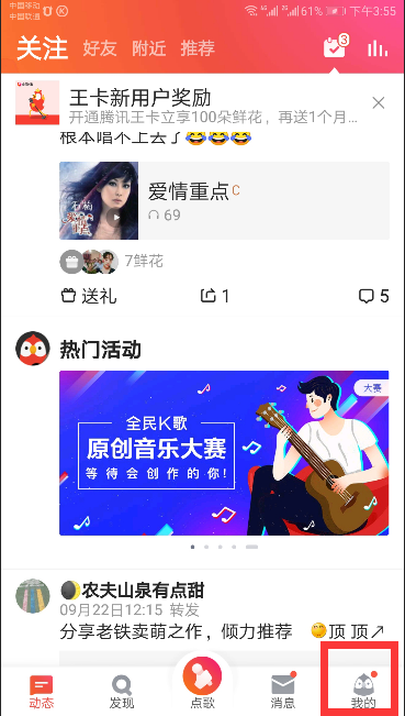 2、打开全民K歌后,切换到“我的”选项