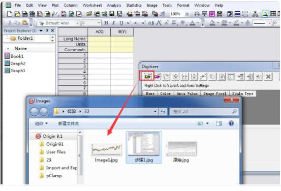 1、首先,打开软件界面,点击Digitizer Tool弹出对话框。