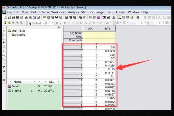 2、接着在Origin中,将输入的数据值转换为曲线图。