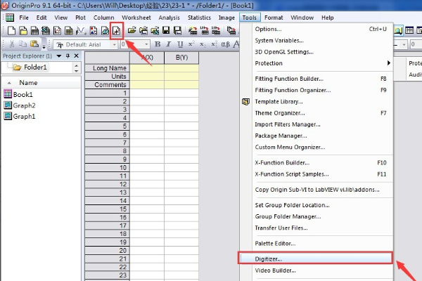 1、首先打开软件界面点击Digitizer Tool弹出对话框。