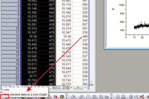 2、然后在origin中,画出需要的其中一个数据图,左下角line,如图: