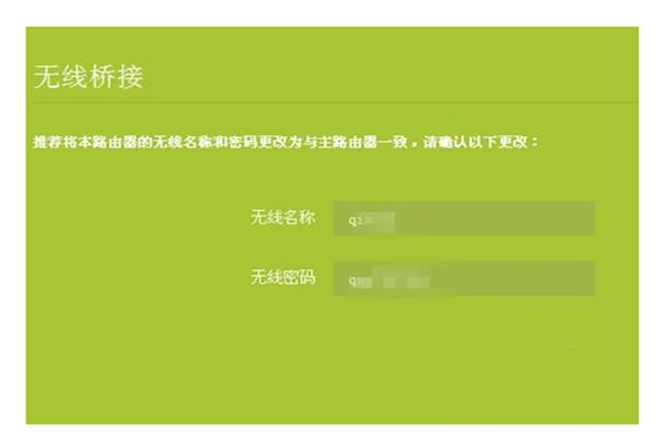 7、接下来填写新路由器的无线名称和无线密码,设为和主路由器一样最好,最后保存设置,之后就可以上网了,这样你在房间里离哪个路由器近,就会自动连接那个路由器。