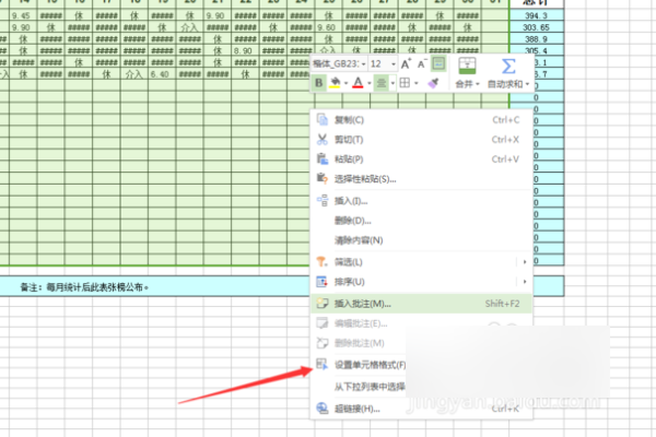 3、然后点击鼠标右键,会出来一个对话框,然后点击设置单元格。