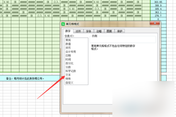 4、我们这边点击之后设置单元格之后,会又跳出来一个对话框的,然后下滑找到文本,然后确认就好了,之后#键就都变成数字了。