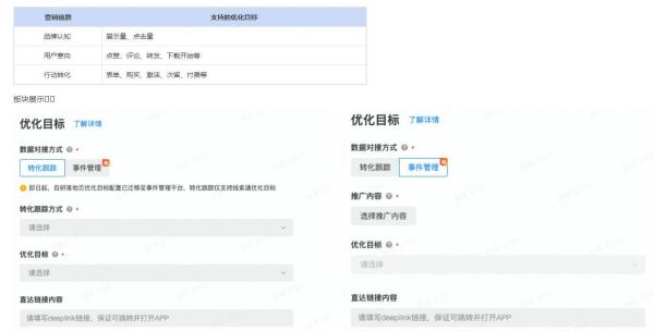 •优化目标是您本次营销活动想要达成的目标用户行为,模型会根据您设定的优化目标来寻找更倾向于发生这些行为的用户。OCPM虽然按照展示计费,但是会按照您的出价帮您寻找发生目标行为的用户。