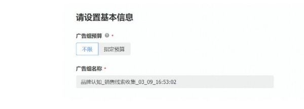 •选择广告组预算:不限/指定预算