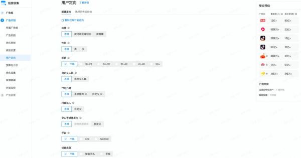 ◦所有广告:所有流量位投放,包括但不限于信息流广告、搜索广告等,寻找对您产品或服务感兴趣的用户。