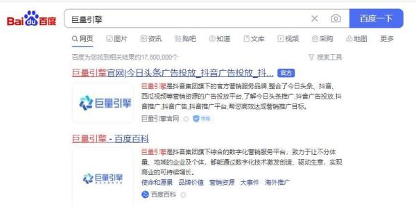 第一步,百度搜索巨量引擎。
