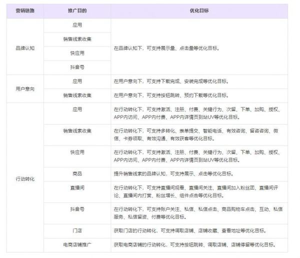 •在不同的营销链路下,所对应优化目标如下: